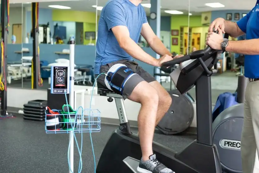 (BFR) therapy limits blood flow to working muscles in order to stimulate muscle growth and prevent muscle loss. This allows muscles to safely work under a low load and gain benefits in growth, similar to high-intensity training with heavy loads.