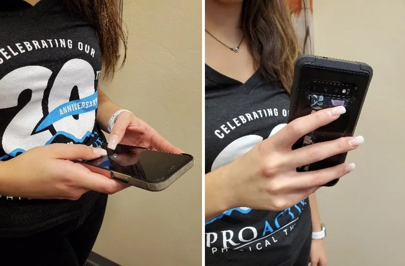 Reduce stress on your fingers when holding a phone by using a pop socket or a strap.